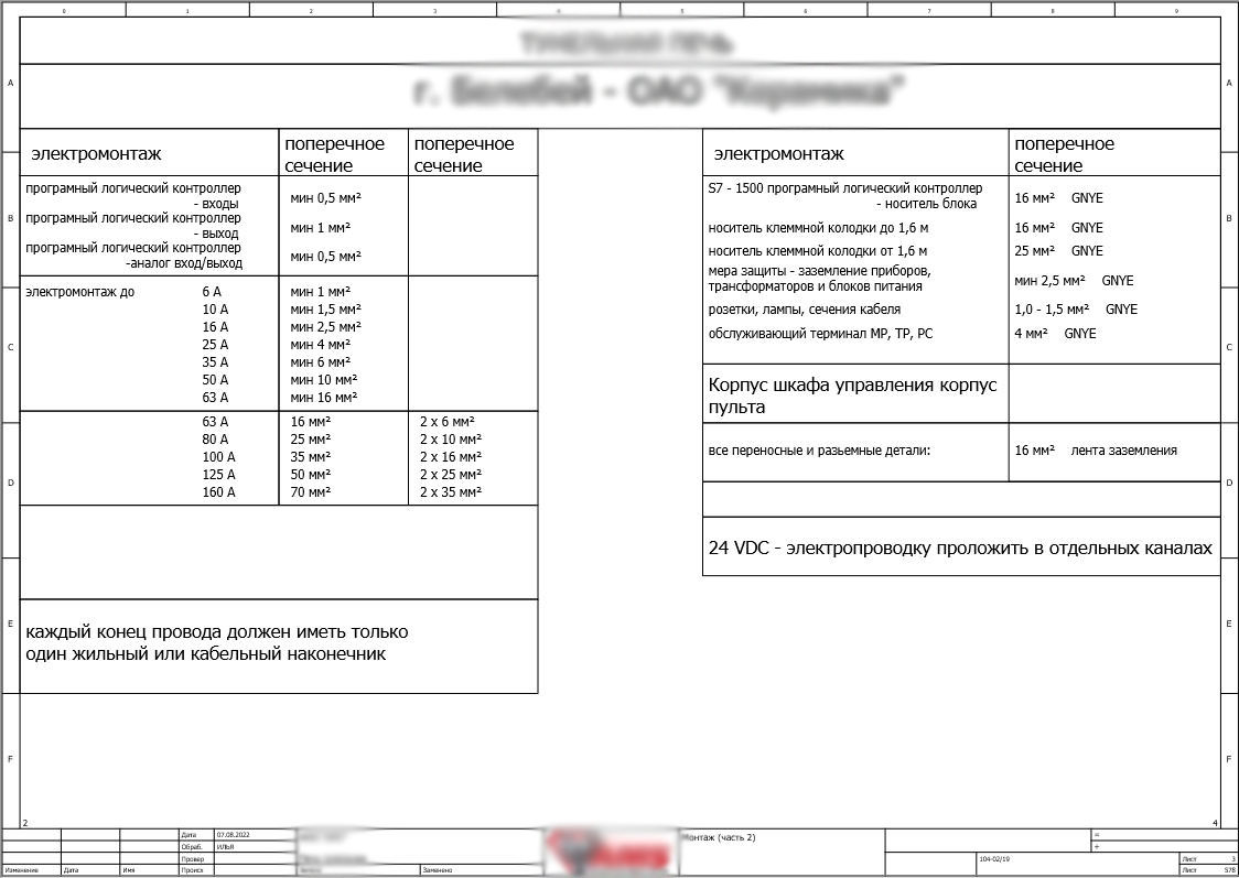 Информация о применяемых напряжениях проекта, а также цветовая маркировка и сечения проводов.