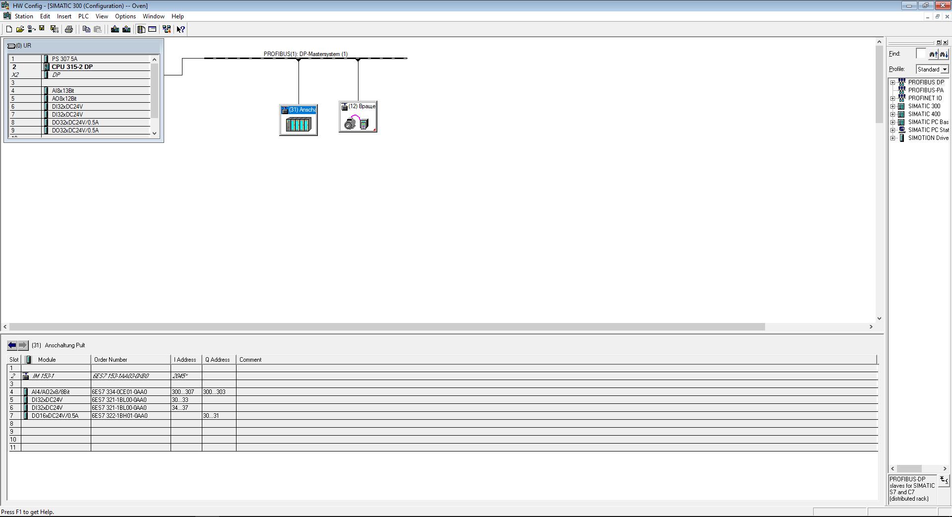 При проектировании системы создается ее проектная (заданная) конфигурация. Она содержит станции с установленными модулями и назначенными параметрами. Система PLC собирается согласно проектной конфигурации. При пуске проектная конфигурация загружается в CPU.
