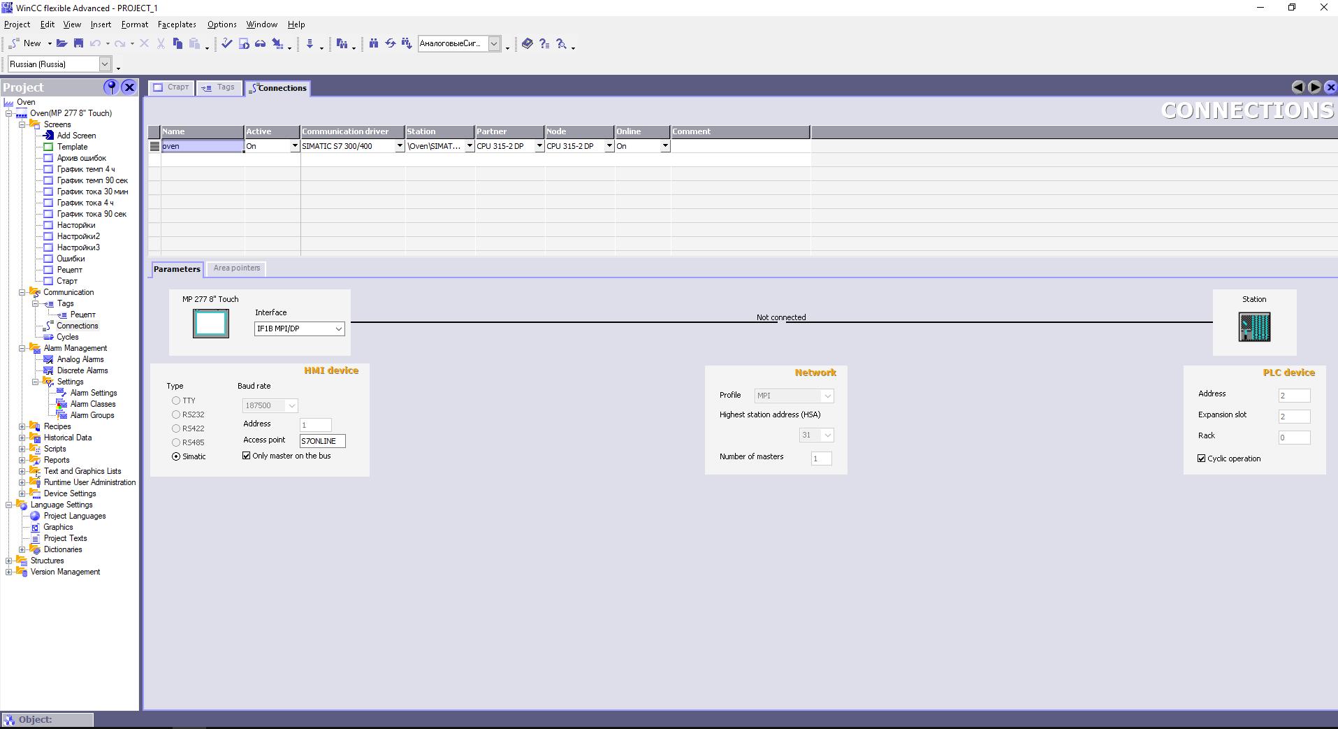 Настройка сетевых подключений панели управления и плк с помощь разнообразных протоколов связи.